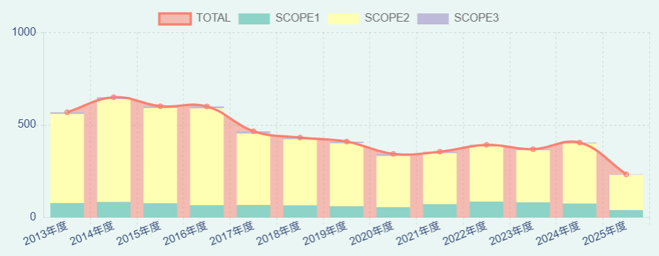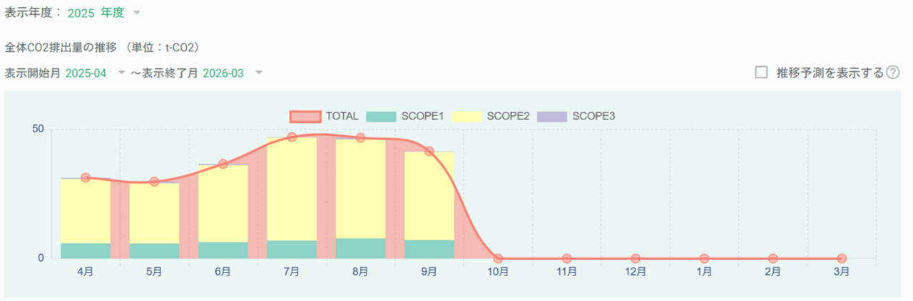 当社のCO2排出量(2025年度/当社開発ソリューション「カーボンノート」より出力・編集)