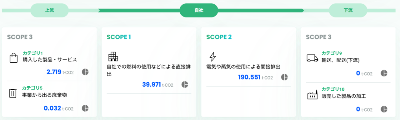 CO2排出量の算出にかかっていた時間を⼤幅に削減し、企業が事業活動を⾏う上で排出するCO2排出量の⾒える化と低減活動の定着を⽀援します。