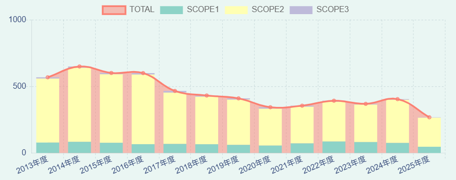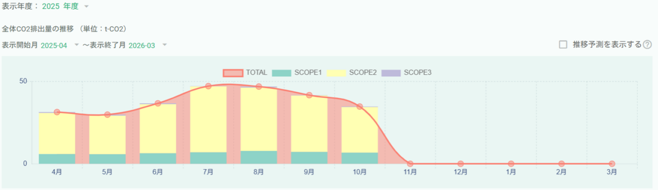 当社のCO2排出量(2025年度/当社開発ソリューション「カーボンノート」より出力・編集)