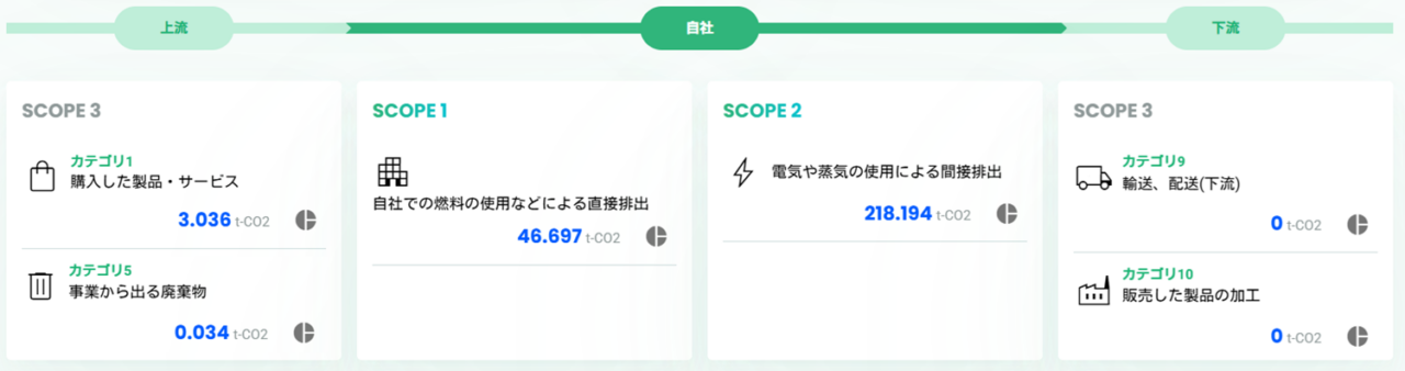 CO2排出量の算出にかかっていた時間を⼤幅に削減し、企業が事業活動を⾏う上で排出するCO2排出量の⾒える化と低減活動の定着を⽀援します。