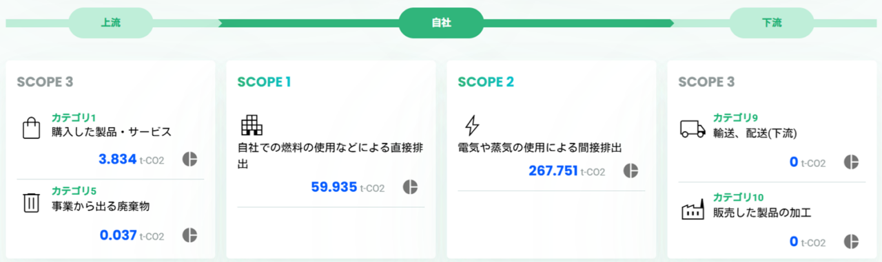 CO2排出量の算出にかかっていた時間を⼤幅に削減し、企業が事業活動を⾏う上で排出するCO2排出量の⾒える化と低減活動の定着を⽀援します。