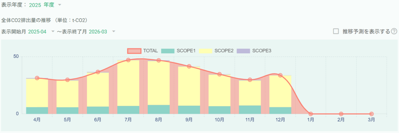 当社のCO2排出量(2025年度/当社開発ソリューション「カーボンノート」より出力・編集)